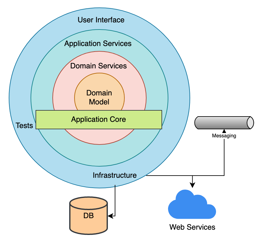 The Onion Architecture defines concentric circles for layers where all code can depend on layers more central, but code cannot depend on layers further out from the core. The Domain Model represents the state and behavior combination that models truth for the organization. The number of layers in application core will vary but it has domain model at the center. The interfaces for repository to to retrieve and persist data surrounds domain model and the interfaces for repository are defined in the application core. The Onion Architecture uses the Dependency Inversion principle to inject implementations for the interfaces defined in the application core.